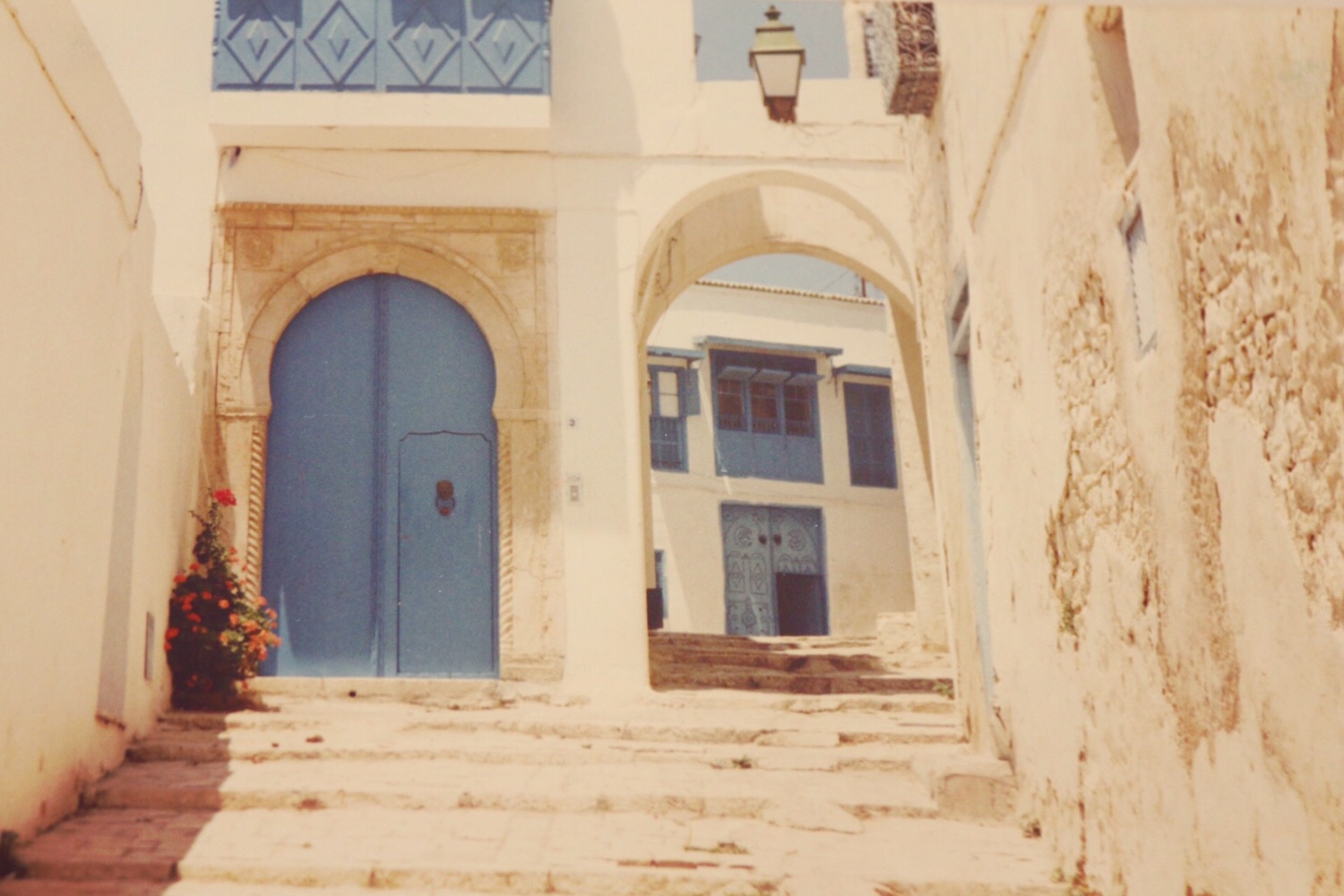 Tunisien var det, ja. Oj vad vi var unga då. Jag minns knappt hur det var. Romantiskt så klart. Gott åt vi. Sniglar med vitlök. Tournedos. Magsjuka blev vi. Koltabletter åt vi. Massor av utflykter gjorde vi. Och redan då hade jag kameran i högsta hugg. Bilden är från Sidi Bou Said. Fler av mina bilder från Tunisien finns att skåda på: min resefotosida.