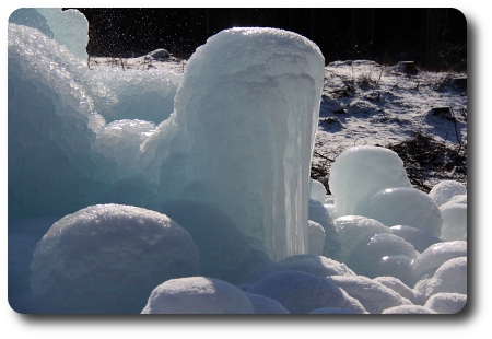 Att isskulpturen bildats är i sig ingen slump. Det är en följd av att vatten sprutas ut just där och att det är minusgrader. Men att det alls ser ut som en skulptur och dess former kan knappast sägas bero på något annat.