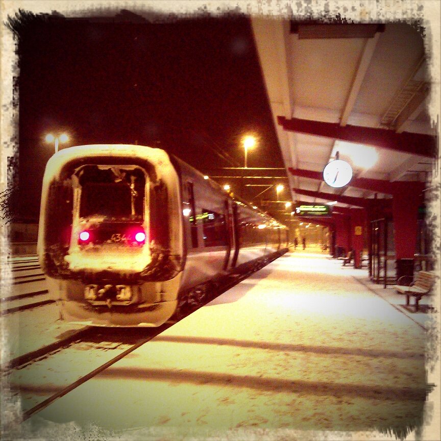 För första gången lever jag numera pendlarliv. Det är mörkt när tåget går på morgonen 6.37. Tåget går till Kristianstad. Det fungerar bra att åka tåg men jag hade önskat fler tågavgångar än en i timmen.