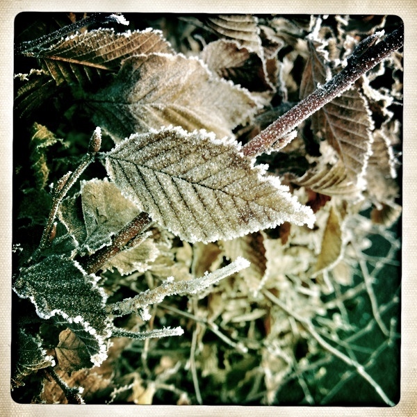Tre bilder från fredagsmorgonen i Kristianstad. Först var det frosten som var i mitt fokus och som jag fotograferade med iPhonappen Hipstamatic. Men strax var där en söt liten rödhake. Och då kom systemkameran fram. Alla tre bilderna är ovan på allt bildredigerade i mobilen med appen Snapseed. Varsågod: veckans fototriss.
