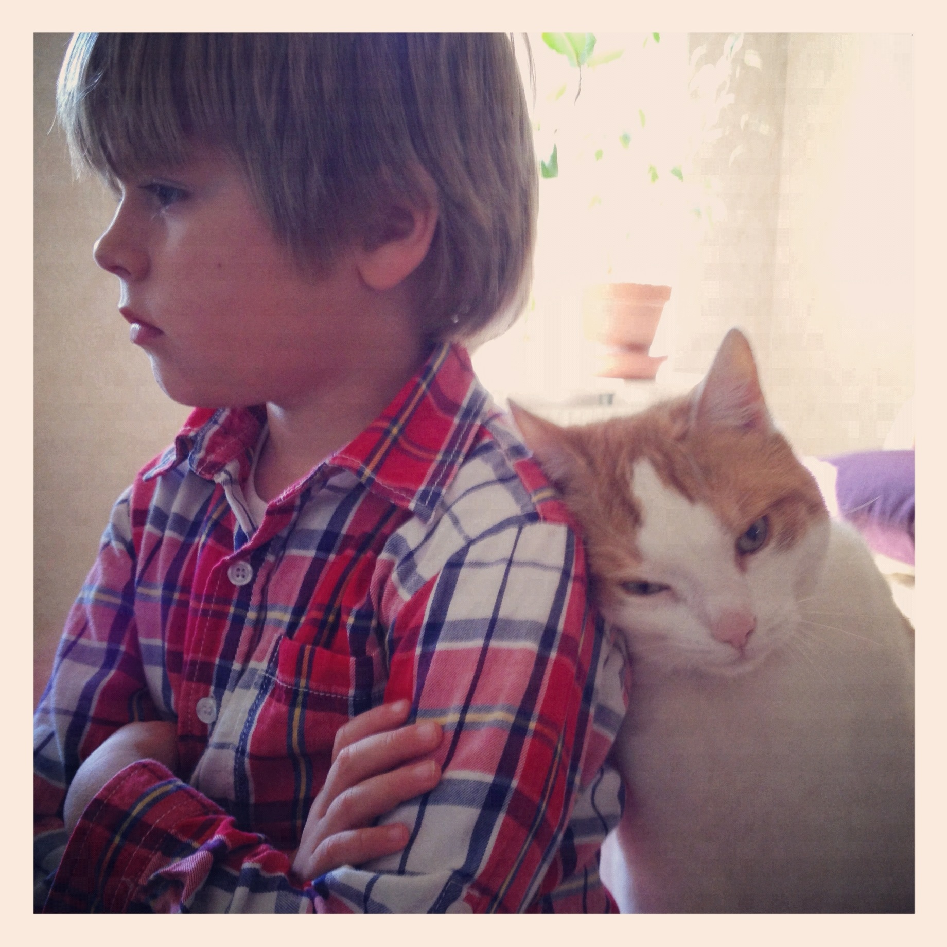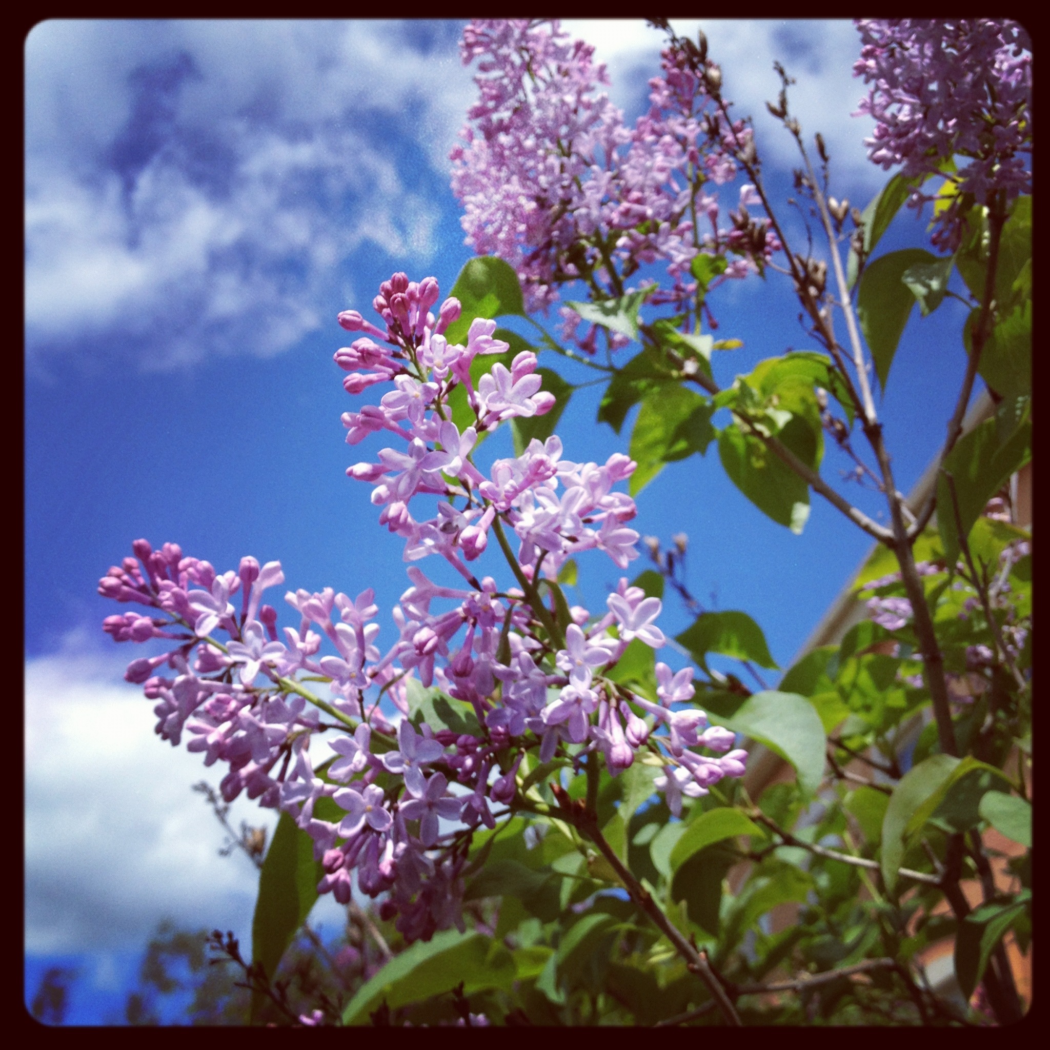 Syrenens blommor växer tillsammans i klasar. Nysköljda blåbär som jag åt tillsammans med min förstfödde i förmiddags. Och så katten som trivs tillsammans med sina människor. I det här fallet minstingen.