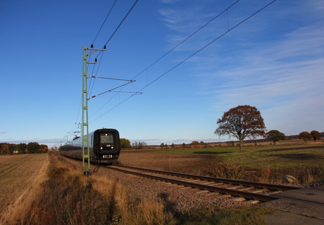 Jag har varit så nyfiken på vad det är för ett träd som jag så ofta fotograferat från tåget under den ljusa delen av året. Jag har gissat på ek. Idag gjorde jag ett besök på plats. Och det visade sig att jag gissade rätt.