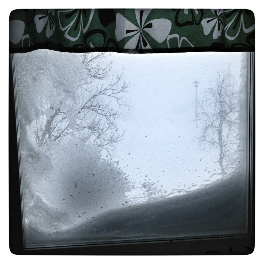 Det hade i och för sig varit möjligt att ta tåget nu 11:11. Men det hade blivit ett tufft pulsande i snöstormen upp till tåget. Så vi avstår.