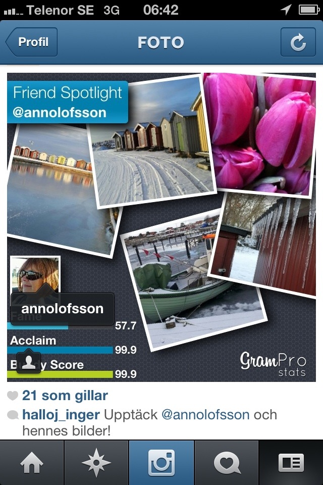 Jag ville så klart testa men upptäckte snabbt att jag allt för sällan postar bilder av folk jag följer på Instagram.