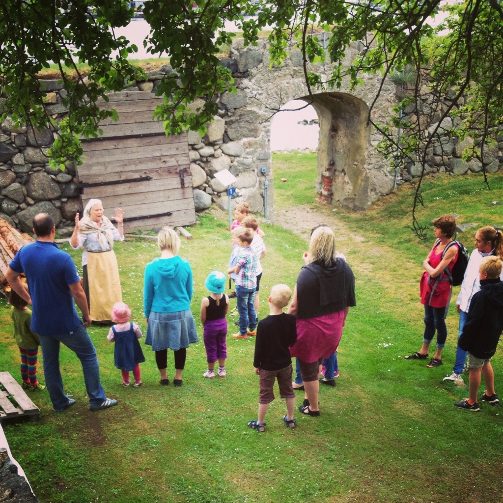 Kastellet i Karlshamn är alldeles fullt av syrener. När man kliver av båten slår doften emot en. I går var det kastellets dag. Barnen fick guidning där de fick lära sig att staden fått sitt namn efter Karl X och lite om de dansk-svenska krigen. Därtill en fartfylld clownshow.