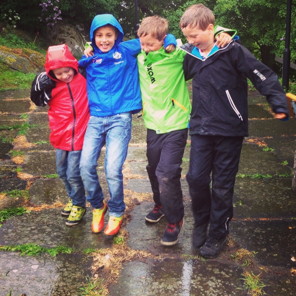 Åskan hängde i luften igår under kastellets dag och till sist kom regnet. Vi fikade utomhus, trots det och efteråt utbröt en spontan regndans.