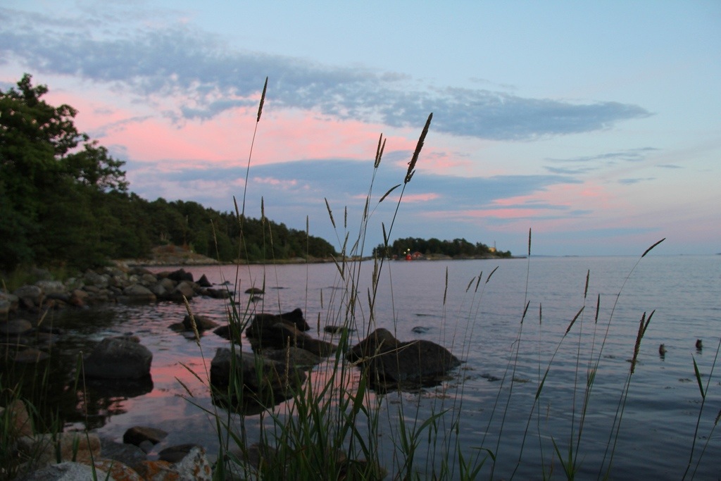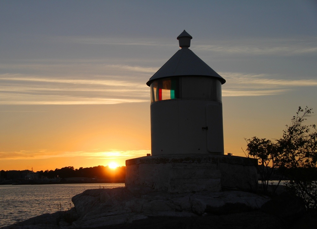Igår på semesterns sista dag gick jag en kvällspromenad längs strandpromenaden i Väggaparken i Karlshamn i förhoppning om att hinna fotografera solnedgången bakom fyren på Ortholmen. Jag hann precis i tid!