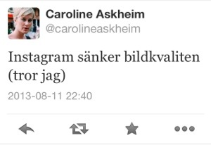 Det var Caroline Askheim ,@carolineaskheim, som skrev: ”Instagram sänker bildkvaliten (tror jag).”