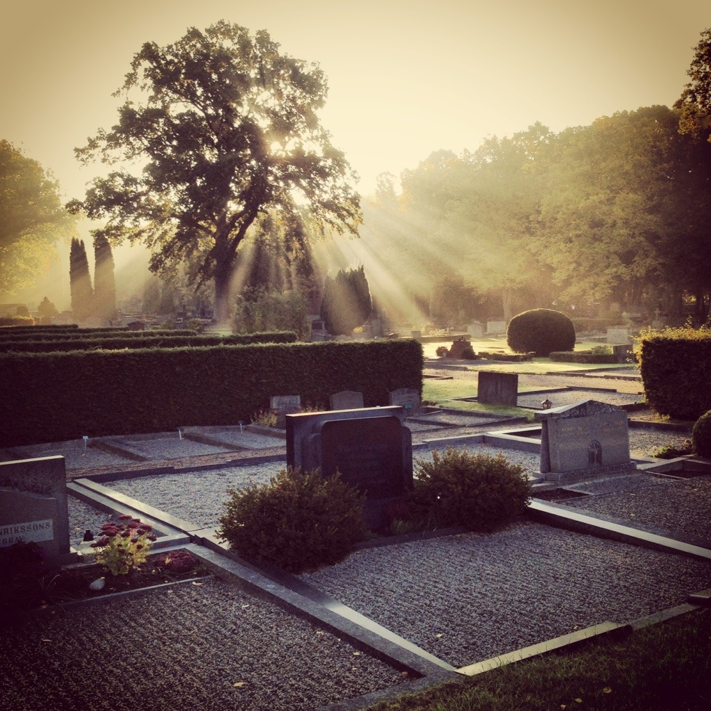 En passande sakral stämning i din kyrkogårdsbild! Som ett slags välsignelse. Det måste ha känts märkligt och mäktigt.