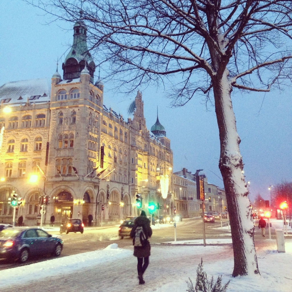 I Kristianstad är det vinter. Och snö. Eller var i alla fall igår.