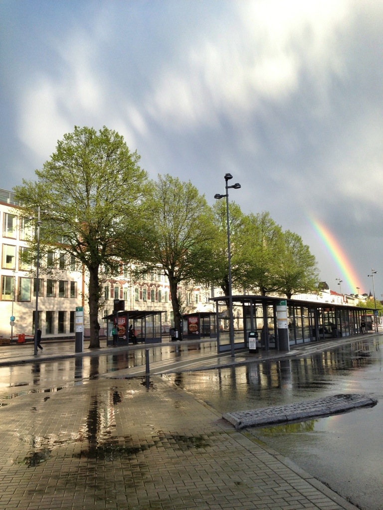 En sån härlig regnbåge det var i kväll. Både i Kristianstad och Karlshamn. Jag fotograferade mängder av bilder. Men bara ett par blev bra.