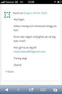 Trots att det såg ut som en spamkommentar valde jag att svara per mejl och fråga vad saken gällde.