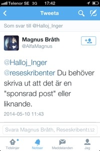 Jag fick flera svar om att det är okej om man anger att inlägget är sponsrat.
