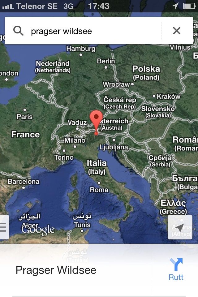 Den är ifrån förrförra veckan och Plitvicesjöarnas nationalpark i Kroatien. Men på Facebook fick jag frågan från Anneli Bengtsson om fotot var från Pragser Wildsee i Dolomiterna. Det var det ju inte. Men jag blev så klart nyfiken på platsen. Dels har jag nu läst Annelis blogginlägg från resan med Karlshamns personalklubb för två år sedan. (Där du kan se ett jättefint foto från platsen.)