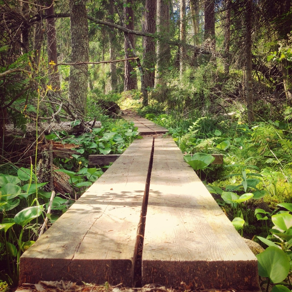 Jag gillar spänger. Det finns något väldigt omtänksamt i att någon lagt ut dessa för att jag ska kunna gå torrskodd genom naturen. :)