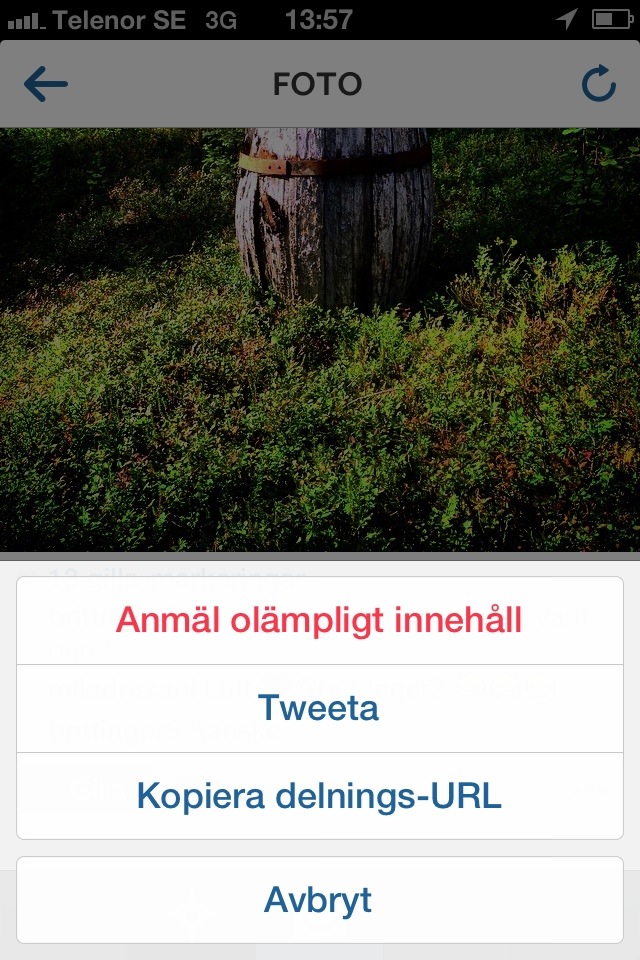 Jag ställde en fråga om det var något särskilt som Britt-Inger undrade över. Och det var det. Det visade att hon ville veta hur man delar andras foton från Instagram på sociala medier som Twitter och Facebook. Jag visade henne då med hjälp av en av hennes egna bilder hur man gör: