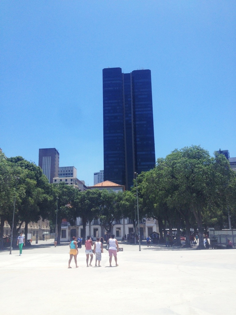 Vi tar tunnelbanan in till Centro, centrala Rio. Kliver av på stationen som heter Uruguaiana. Promenerar bland resterna av kolonial arkitektur. Det är varmt. 35 grader. Klockan är redan halv ett och det vore gott med lunch. Särskilt som restaurangen vi just passerade skyltar med att det är luftkonditionerat. Vi vänder tillbaka och går in där. Äter omelett. Det smakar bra men minstingen har ingen aptit. Det är nog värmen.
