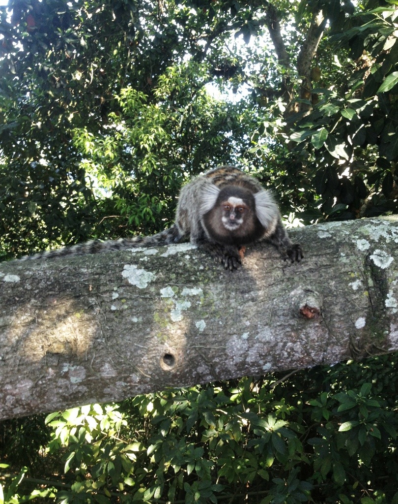Vi har precis ätit upp vår sena lunch som vi tagit på det mindre berget intill Sockertoppen när aporna dyker upp. Detta, det mindre berget heter för övrigt Morro da Urca.
