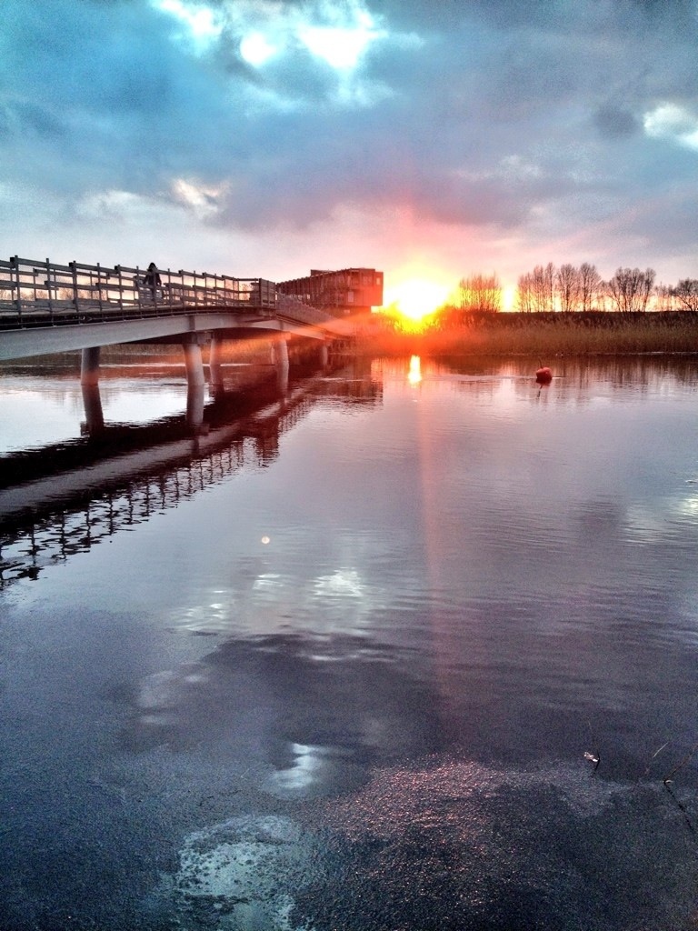 Och solnedgångarna på vägen hem. Som den här. Som jag fotograferade i går vid Helge å strax innan jag tog tåget hem.