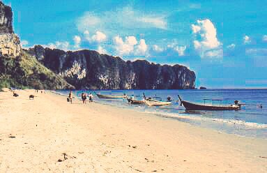 (Några få av mina egna diabilder från den här tiden har jag skannat in på en skanner jag hade en tid men som var jättelångsam och gav pyttesmå bilder. Den första av de här två är från Ao Nang. Den andra från Ko Phi Phi,)