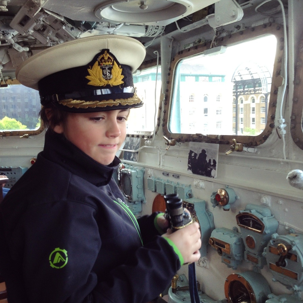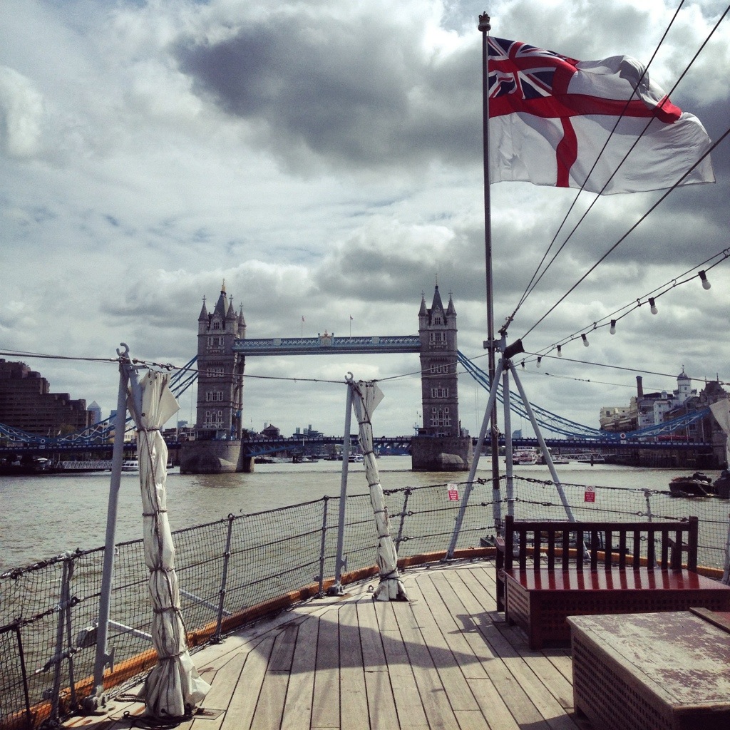 Istället blev det ett spontanbesök på ett krigsfartyg på andra sidan Themsen.