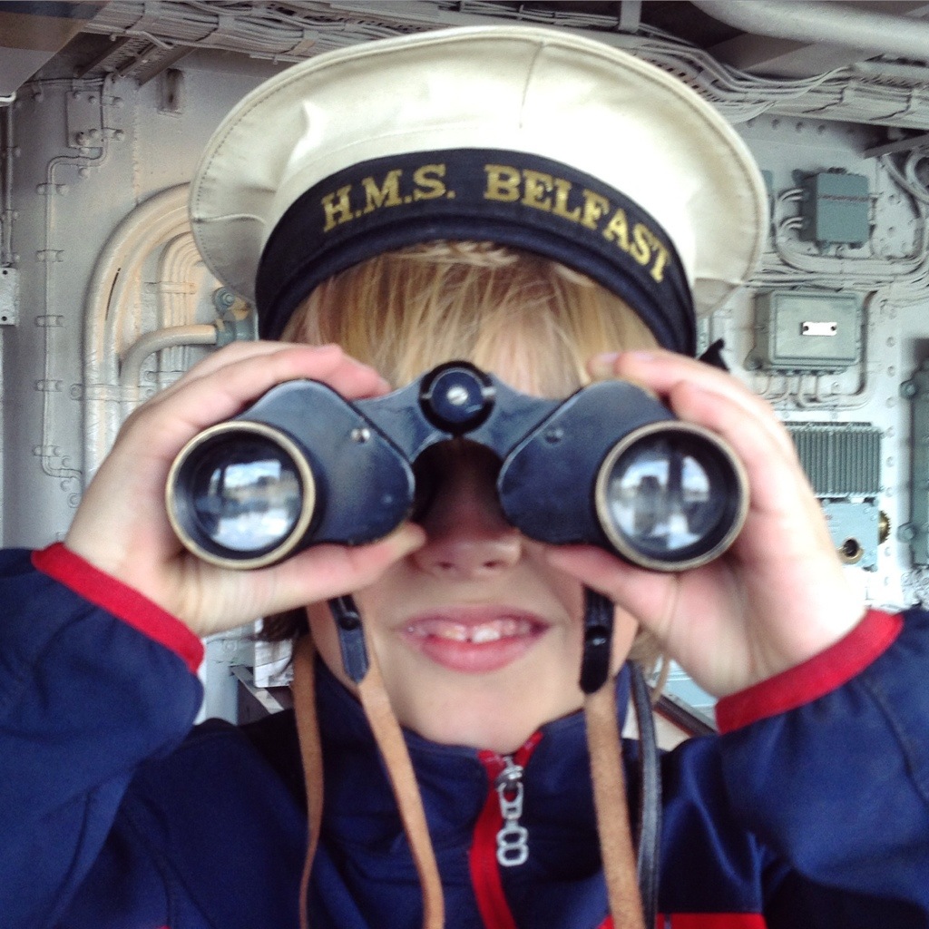 Numera, och sedan 1975, är HMS Belfast ett museifartyg. Ombord kan man se hur livet ombord var ett helt litet samhälle i sig med postkontor, tandläkare, operationssal, kök och sovplatser. Bland annat. Allt bland bomber och kanoner. Även från svenska Bofors. Just i år pågår en extra utställning som heter ”the Tourists” på skeppet. Det är en konstinstallation och när jag gick runt på fartyget undrade jag i mitt stilla sinne om konstnären ville driva med oss turister som i den brittiska huvudstaden fotograferar allt vi ser. Även lustigt utspökade museidockor.