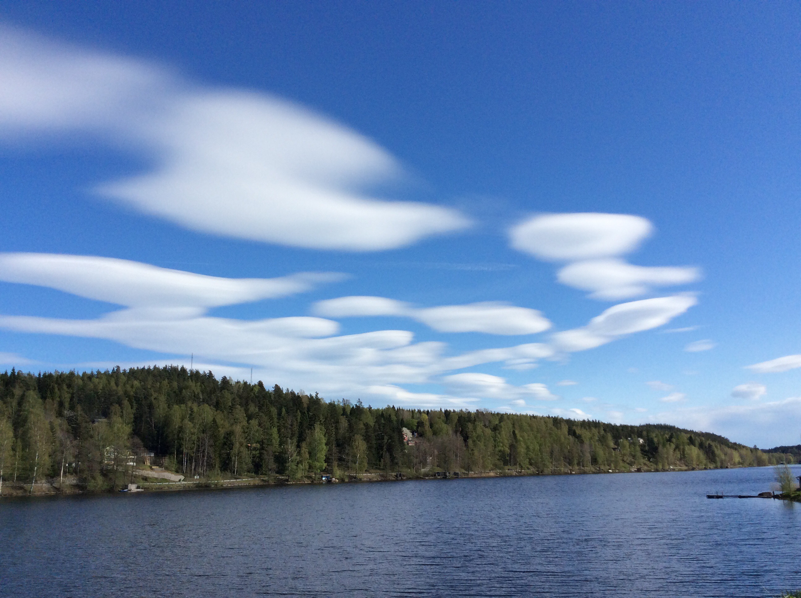 ”Ibland kan vackra linsformade böljemoln uppträda på himlen. De bildas i samband med de vågor som kan uppkomma i atmosfären i lä av höjder och bergskedjor. De kallas därför också för lävågsmoln.