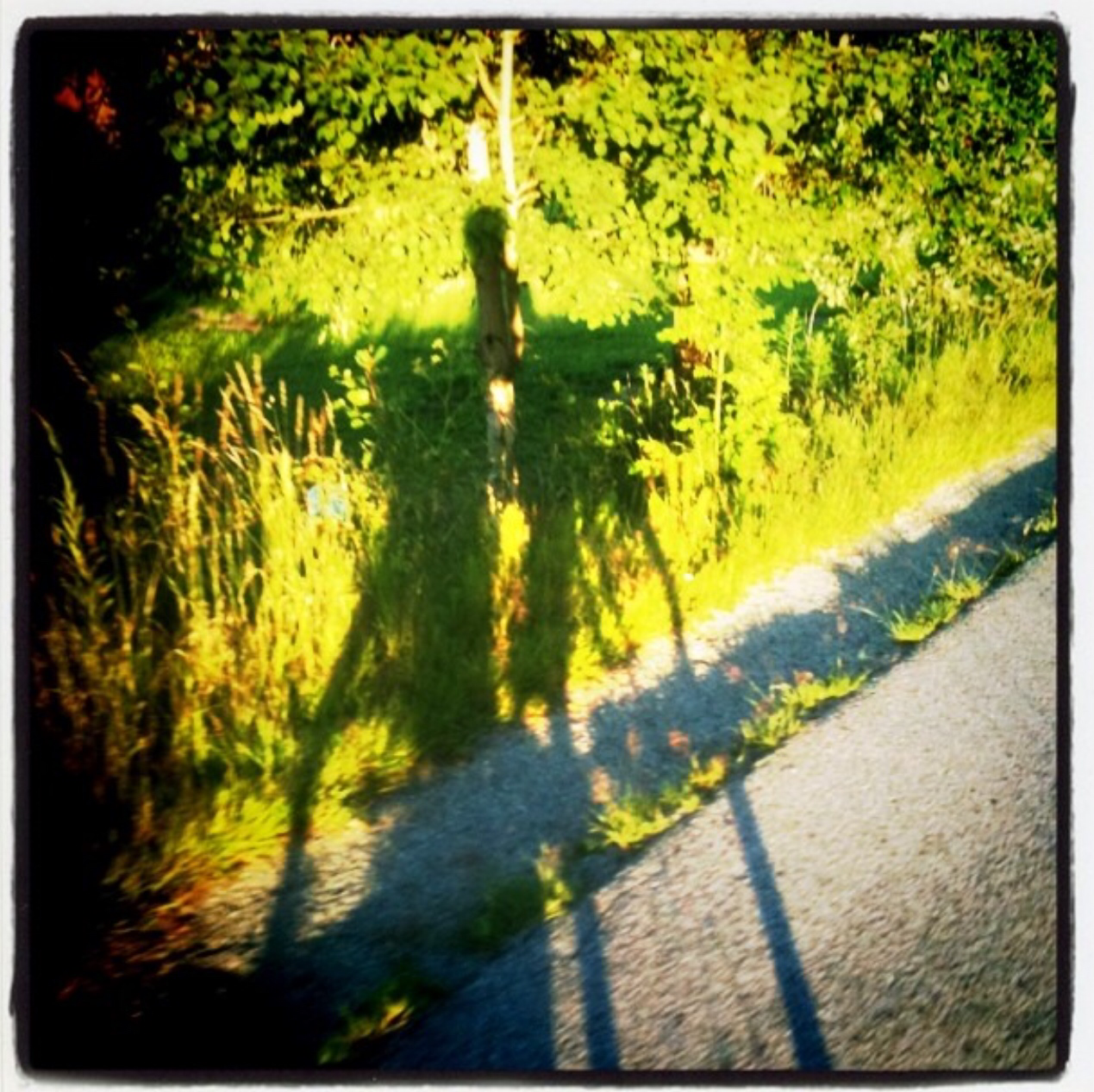 Rörigt komponerade bilder uppskattas sällan. Det är absolut inte fel med förgrund och bakgrund i en bild när de tillför något. Men lite allt möjligt i en bild – i en salig röra – blir inte bra. Här har jag försökt fotografera skuggan av mig på en cykel men mot den bakgrunden, med en stor skugga i mitten dessutom – blev det bara rörigt och svårt att begripa bilden.