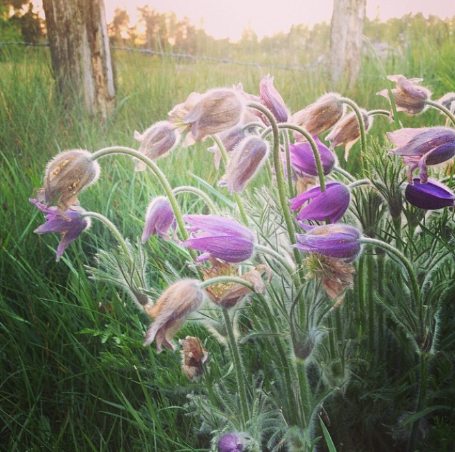 Vackert ljus kan vara motljus som på den här bilden av backsippor i Vä. Men det kan lika gärna vara sidoljus eller ljus rakt framifrån. Just bilder i motljus kan ofta bli lite mörka och kan då förbättras med Lux-filtet i Instagram.