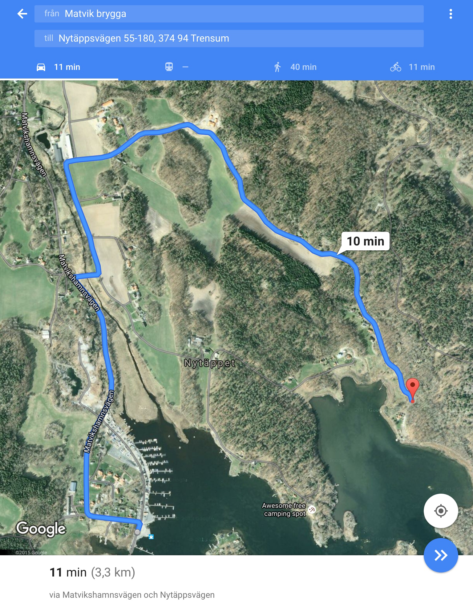 Ska du till parkeringsplatsen i västra delen av reservatet ska du istället knappa in ”Nytäppsvägen 55-180, 374 94 Trensum” så hittar du rätt.