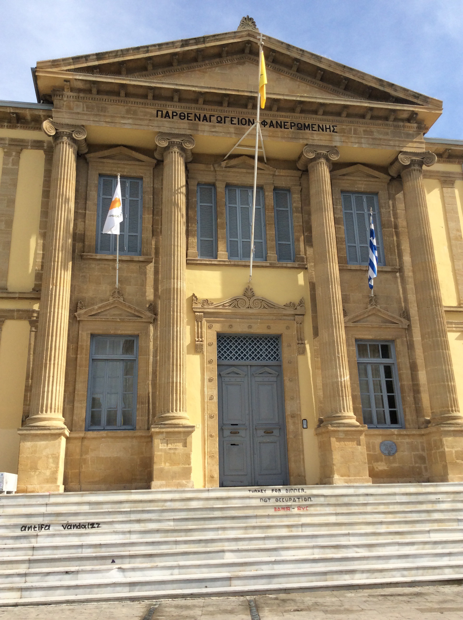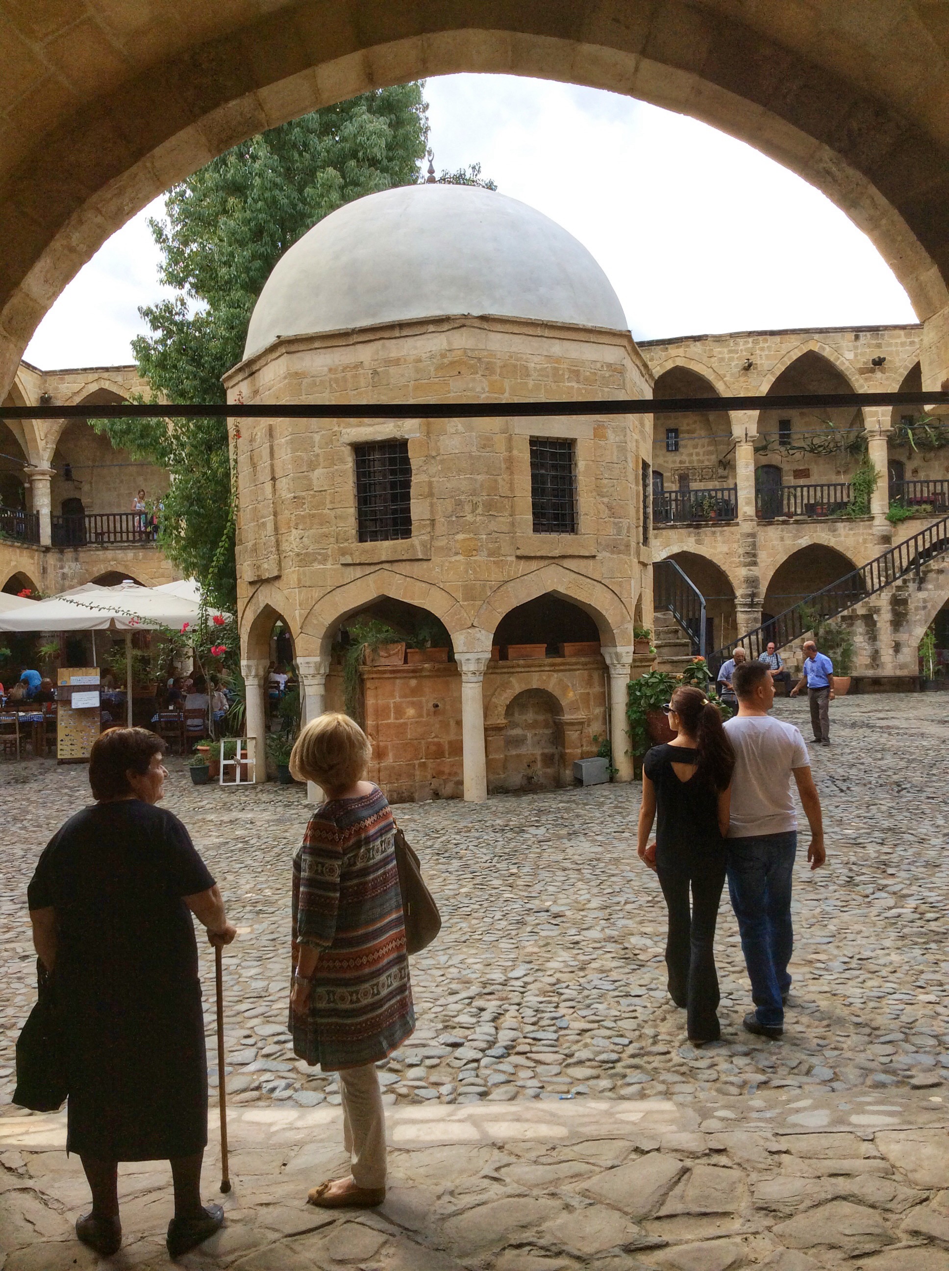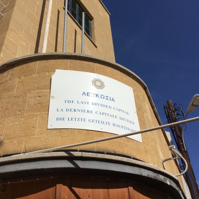 Nicosia heter den cypriotiska huvudstaden på svenska och engelska. Lefkosia heter den på grekiska. Möjligen också på turkiska. Jag vet inte. Rakt igenom gamla stan skär linjen som delar den norra, turkiska, delen av ön från den södra. Bakom ett kafé på den grekiskcypriotiska sidan ligger sandsäckar med taggtråd på toppen. Vid gränsen råder på flera platser fotoförbud. För att komma över måste du via passet två gånger och däremellan passera en kort sträcka ingenmansland som varken tillhör den ena eller andra sidan och där husen står tomma. Märkligt.
