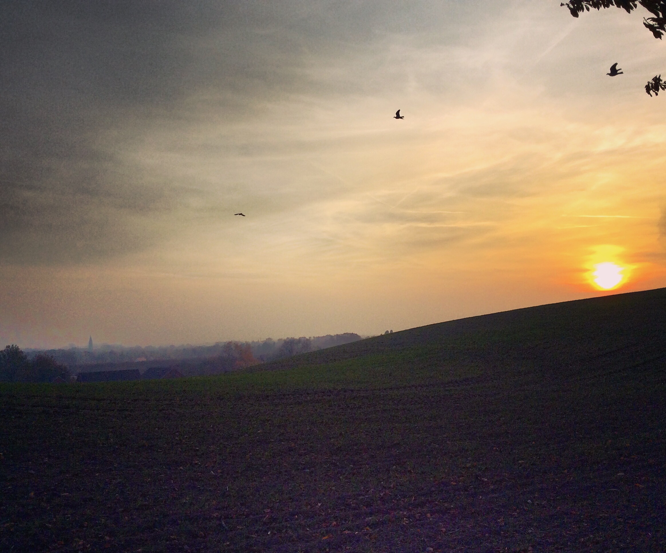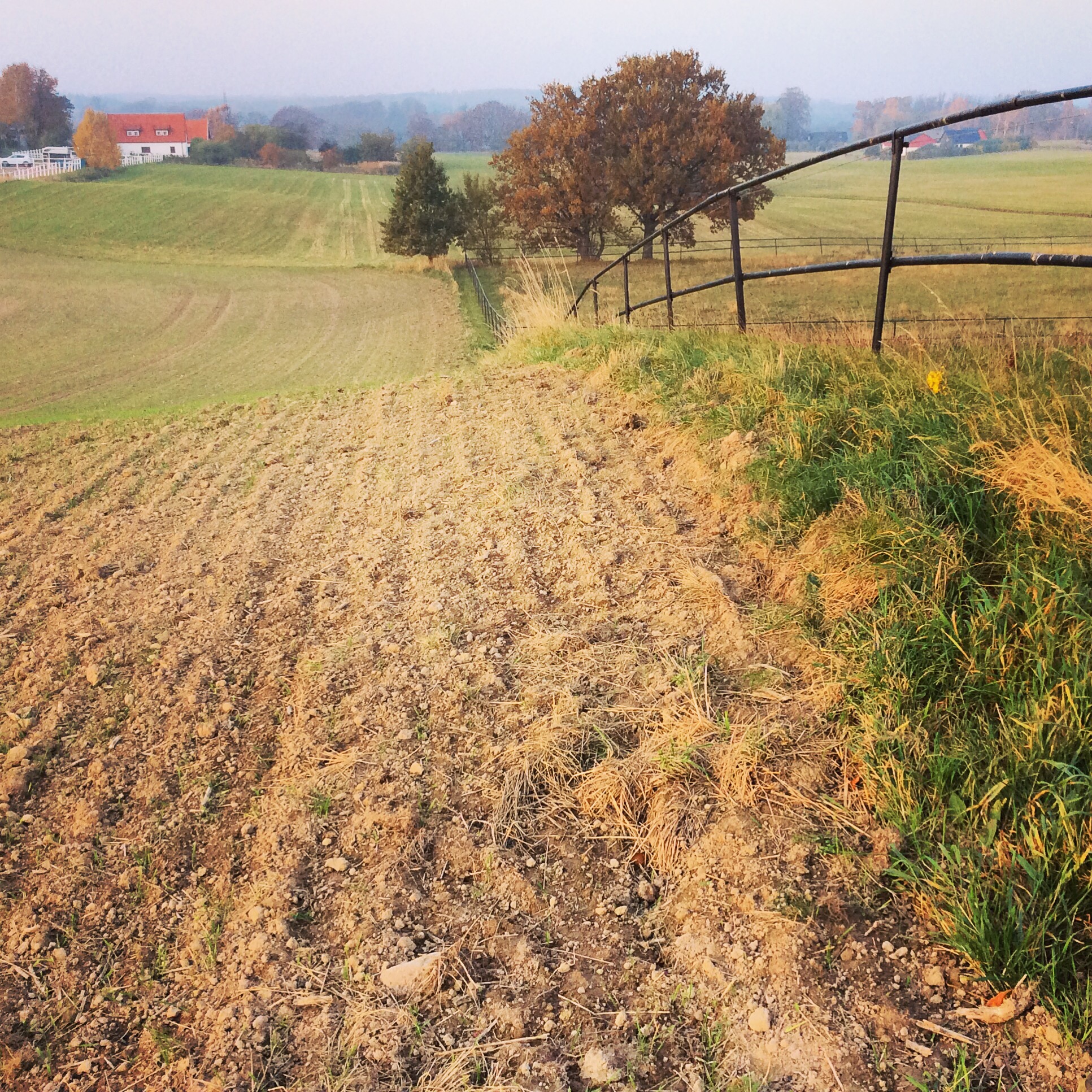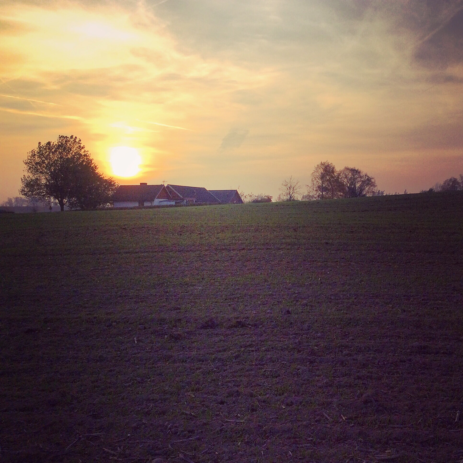 Nu är vi hemma i Sverige igen. På besök i Svedala. I går eftermiddag gick jag en kort promenad i omgivningarna. Skånskt jordbrukslandskap i solnedgången.