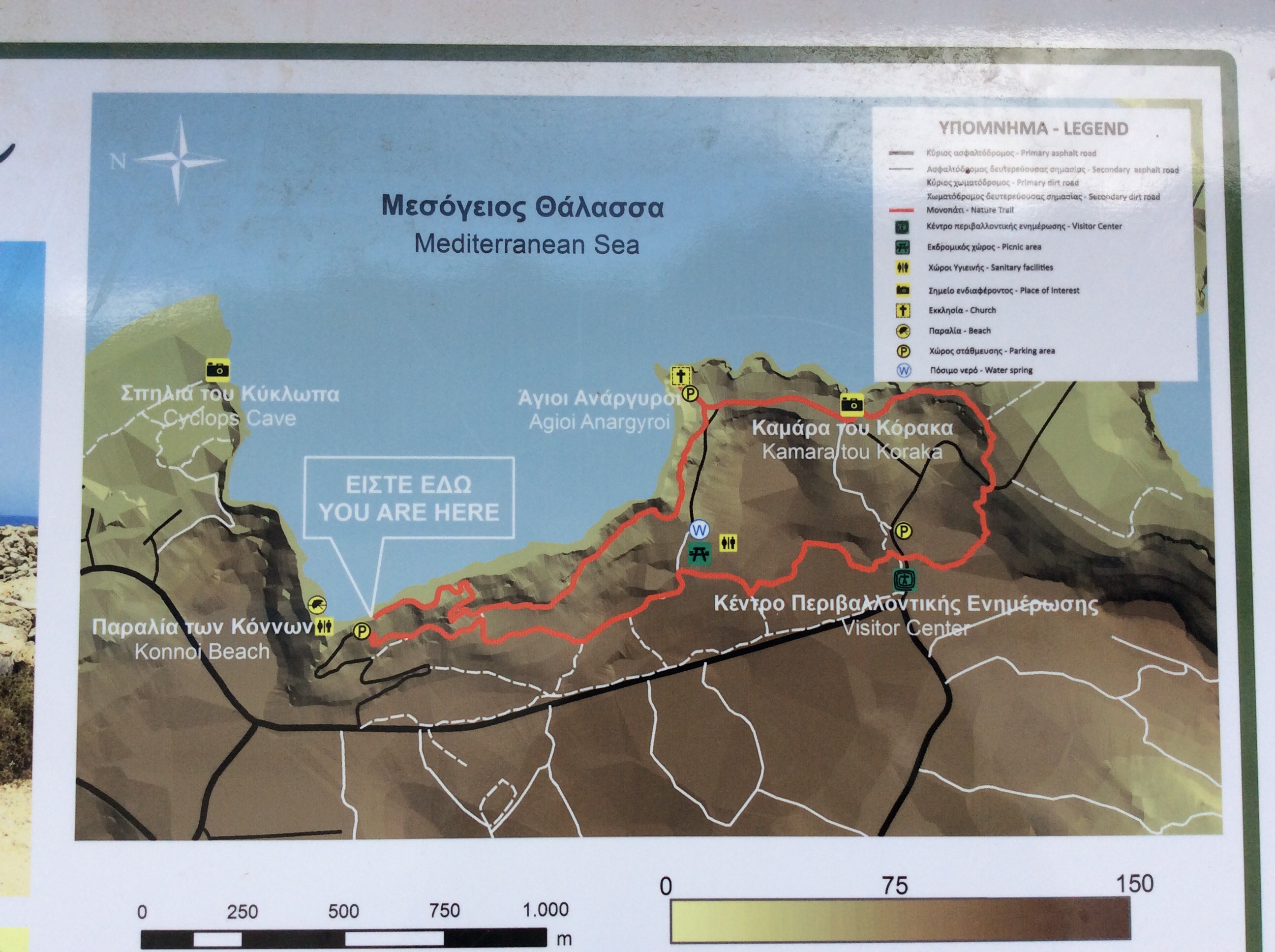 Vid parkeringsplatsen vid Konnos Beach Kiosk finns en informationsskylt som visar vandringsleden. Jag fotograferade av kartan med min iPad för att ha med mig på vandringen.