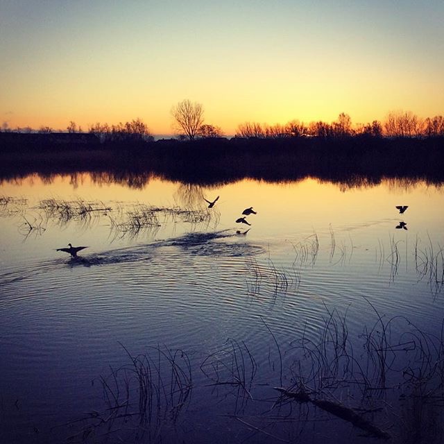Februari. I Kristianstad finns naturen och Vattenriket mitt i stan. Solen går ner vid naturum som syns genom vassen från stadsparken som heter Tivoliparken. 146 gillade bilden.