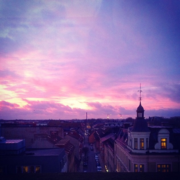 Januari. De mörka månaderna hinner jag inte så ofta fotografera i vardagen under de få ljusa timmarna. Den här morgonen fotograferade jag, genom fönstren på jobbet, en ovanligt vacker soluppgång över takåsarna i Kristianstad. 119 gilla-markeringar fick den här bilden.