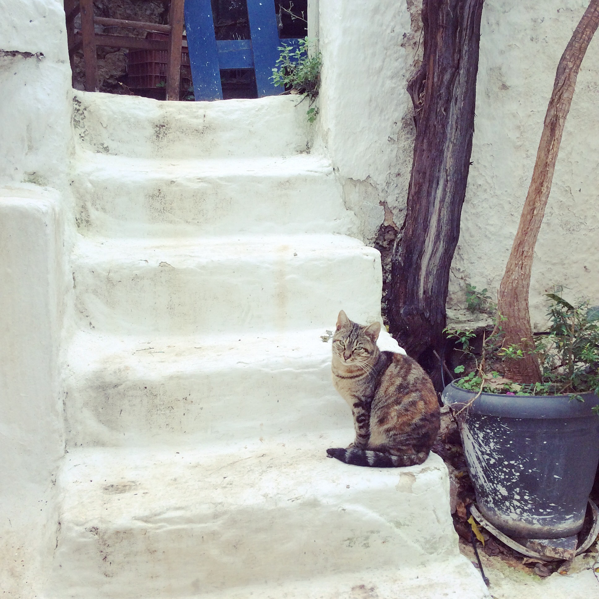 En katt. Resmål vid Medelhavet, särskilt i Grekland, förknippas med katter. Här en katt i en trappa i Aten. I ett område som påminner mer om bebyggelsen i den grekiska övärlden än den i en Europeisk storstad. 140 gillade på Instagram.