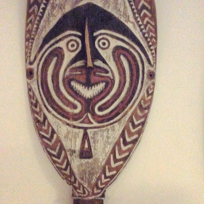 1. Sådana där masker är ju kluriga, de finns i så många delar av världen. Det kan vara Sydostasien, Oceanien, eller Sydamerika. Bolivia?