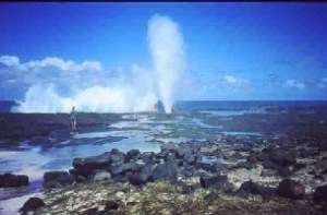 På Savaii bodde vi inte fullt lika enkelt. Vid Siufaga. Där gjorde vi ett par fina utflykter. Vi såg flygande hundar och ett vattenfall vid Olemoe ”swiming hole”. Och vi såg så kallade ”blowing holes” vid Alofaaga. Det är håligheter i klippstrand av lavasten där havets vågor trycks upp med stor kraft så att det påminner om gejsrar.