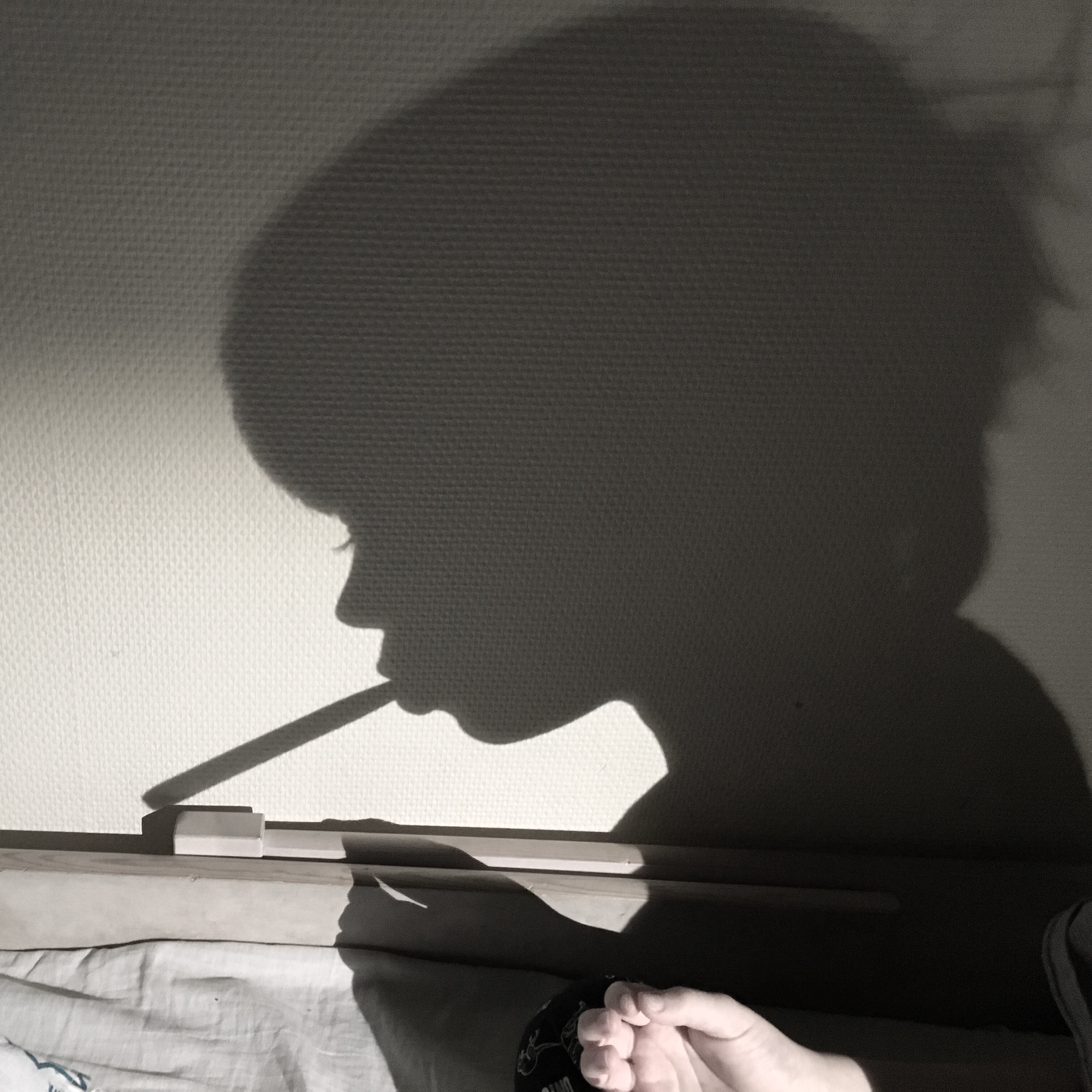 Jag ville faktiskt ha med handen och sängen i förgrunden för att bilden skulle bli tredimensionell. Men visst hade jag kunnat göra en renodlad skuggbild också. :)