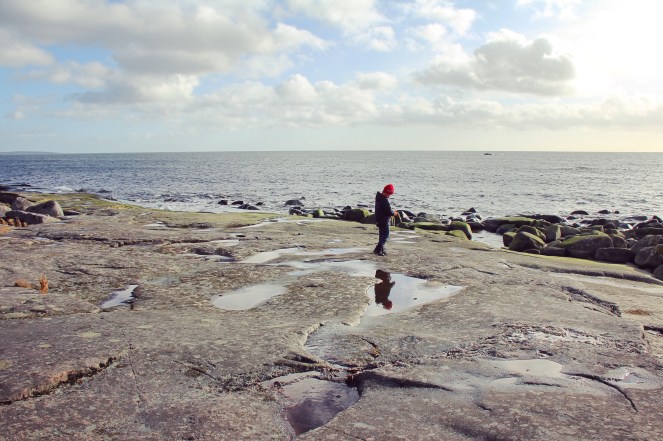 Om du åker ner mot Stärnö Vindhamn tar du till höger precis innan du är nere i småbåtshamnen. Du följer grusvägen en liten bit tills du kommer till en vändplats där du kan parkera. Det är en bra plats att utgå ifrån för en söndagspromenad vid havet. Du kan ta med dig matsäck med varm choklad som är så gott att dricka ute i naturen så här års. Kanske hör du, som jag, en hackspett som trummar mot ett träd. Sjöfågel av olika slag ser du alldeles säkert.