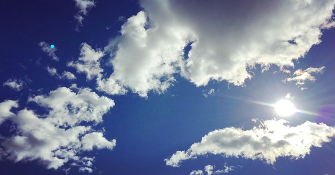 Jag tittar upp mot molnen och tycker att de liknar en kartbild av en främmande arkipelag. Någonstans i Karibien kanske?