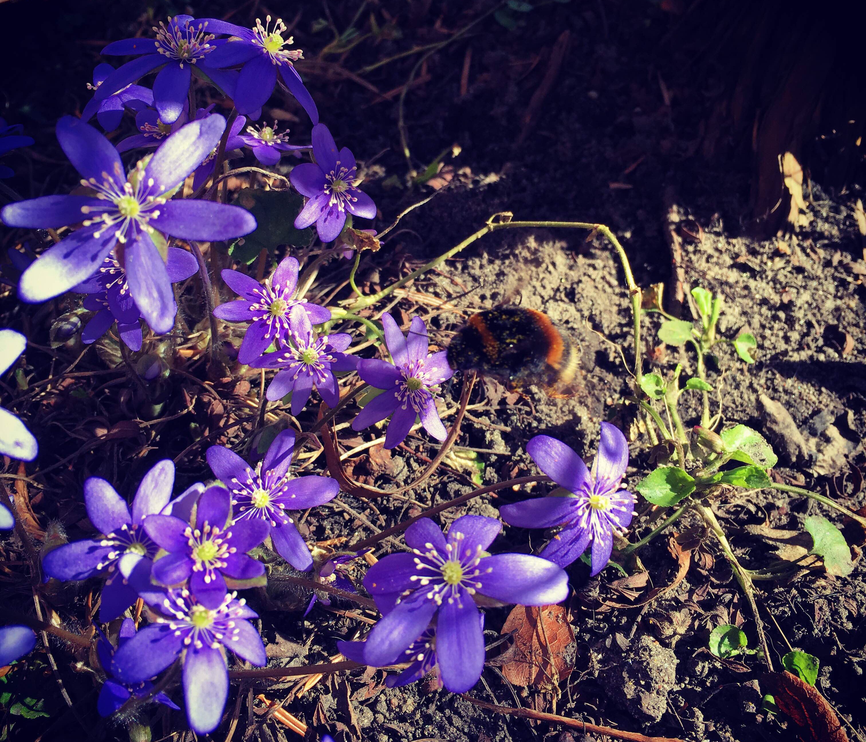 Sitter i vårsolen. Blåsippor och krokusar blommar. En fjäril fladdrar till men gör ingen sommar. Och sen årets första humla också. Vintergäck och snödroppar en bit bort. Katten lapar också sol. Ligger på bordet på den tidning jag nyss bläddrade i. Resemagasinet Vagabond. Jag längtar ut i världen och funderar på detta med oförenliga mål.