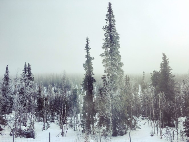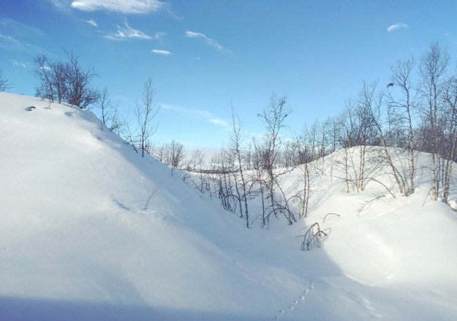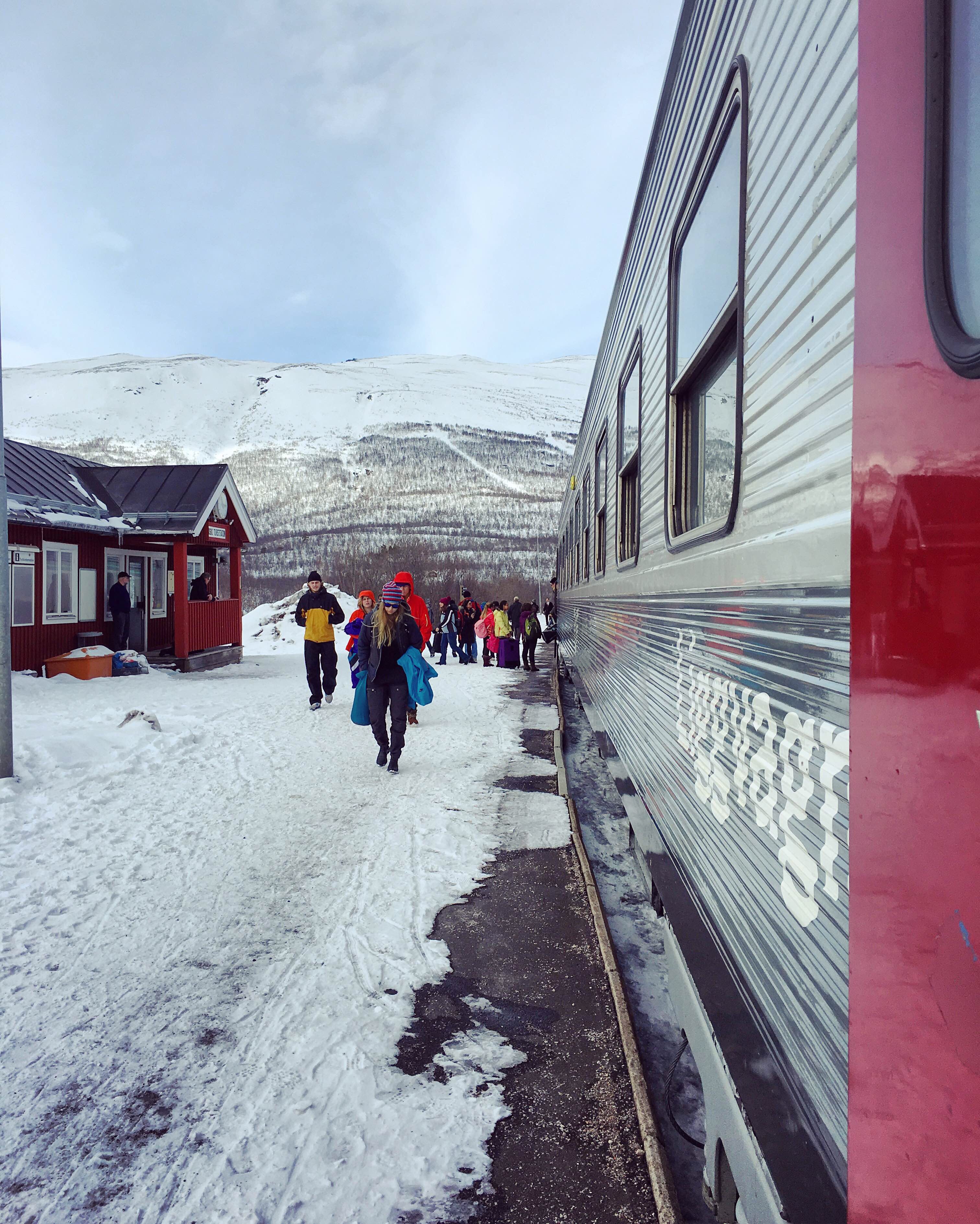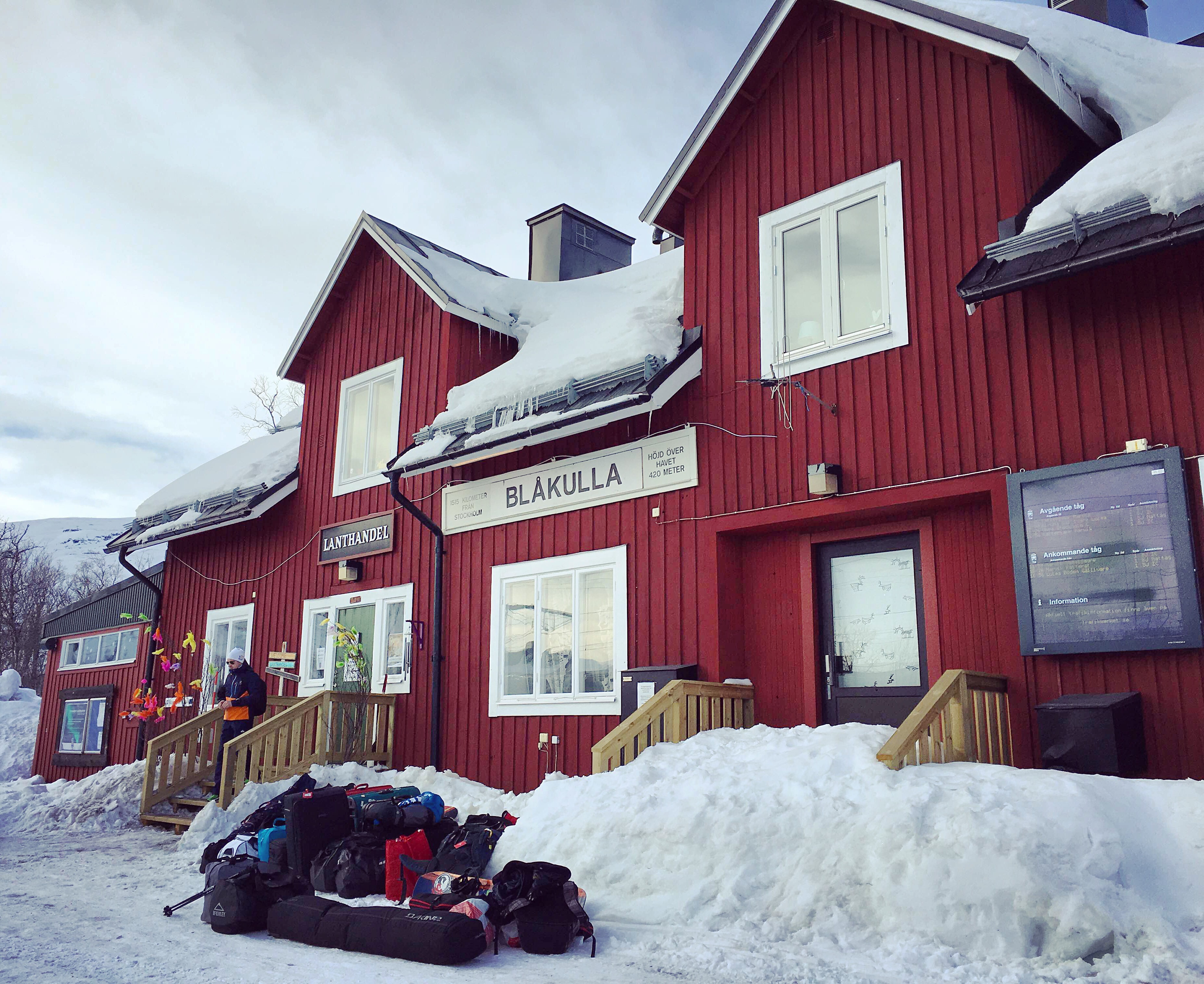 Från mitt ute i ingenstans via Kiruna och Abisko Östra och Abisko Turiststation till Björkliden. Eller ursäkta, Blåkulla menar jag så klart. (Kolla själv skylten på stationsbyggnaden.)