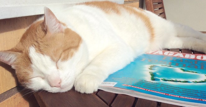 Han skulle bara veta att tidningen han ligger på är en sån som ger matte ännu mer inspiration av det slag som gör att han hamnar på kattpensionatet ännu en runda…