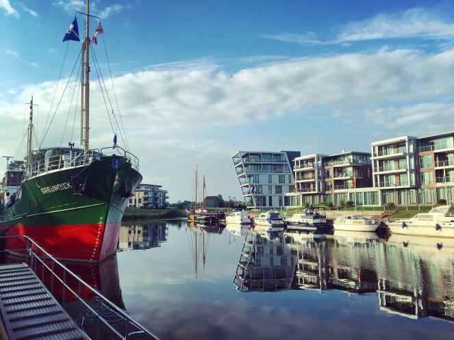När vi anländer till staden Stade är vi rejält möra. Vi har suttit i bilen i stort sett hela dagen. Bara ett kort stopp för lunch på en pizzeria i Rødbyhavn.  Egentligen hade jag i förväg sett ut en annan restaurang där. Men den verkade ha slagit igen för gott. Så då blev det pizza och pasta. Och sedan av och ut på däck på färjan 45 minuter till Tyskland.  Annars mil efter mil i bil. Förbi Hamburg var trafiken rejält igenkorkad och resan tog därför längre tid än Google Maps beräknat. Skönt då att äntligen vara framme!