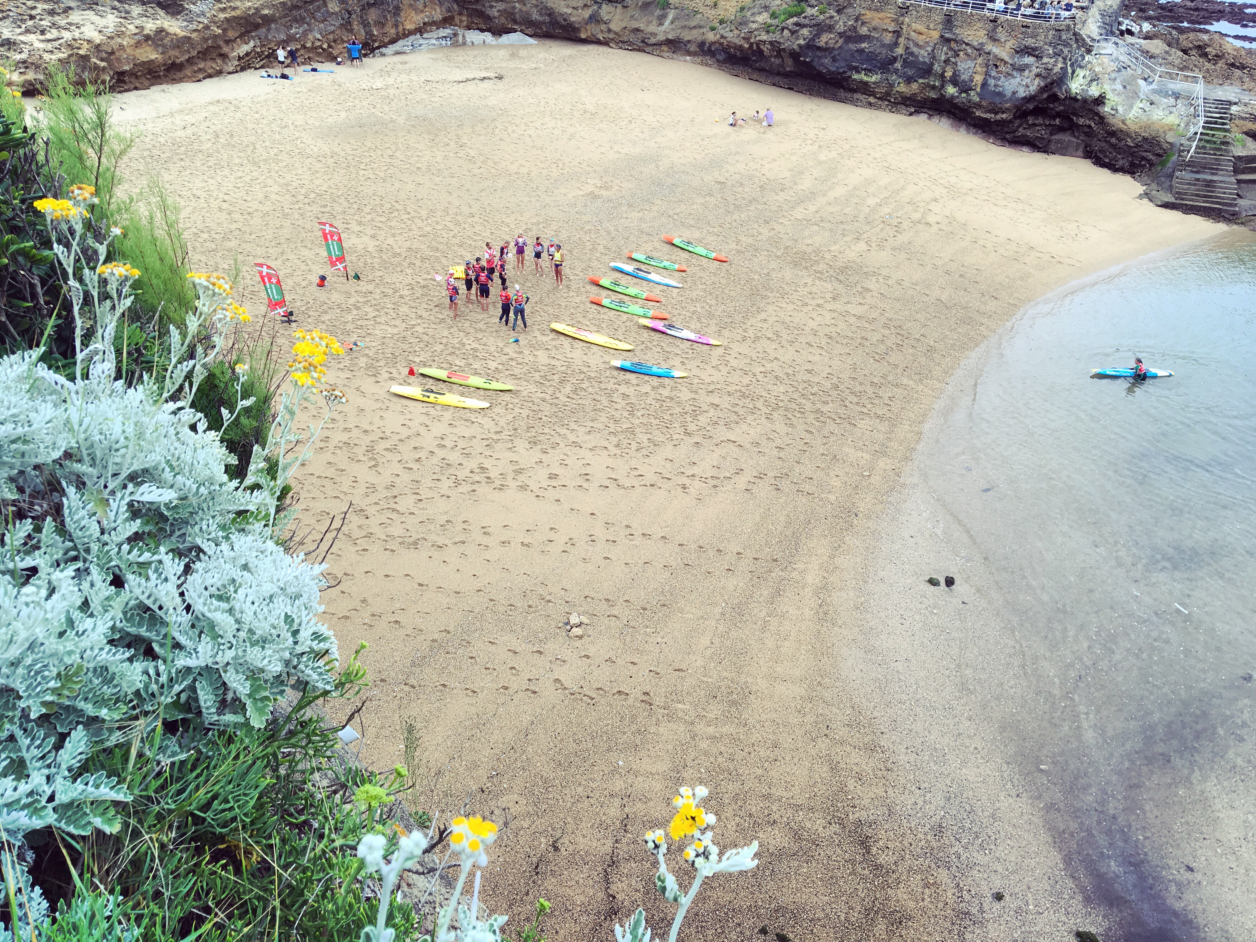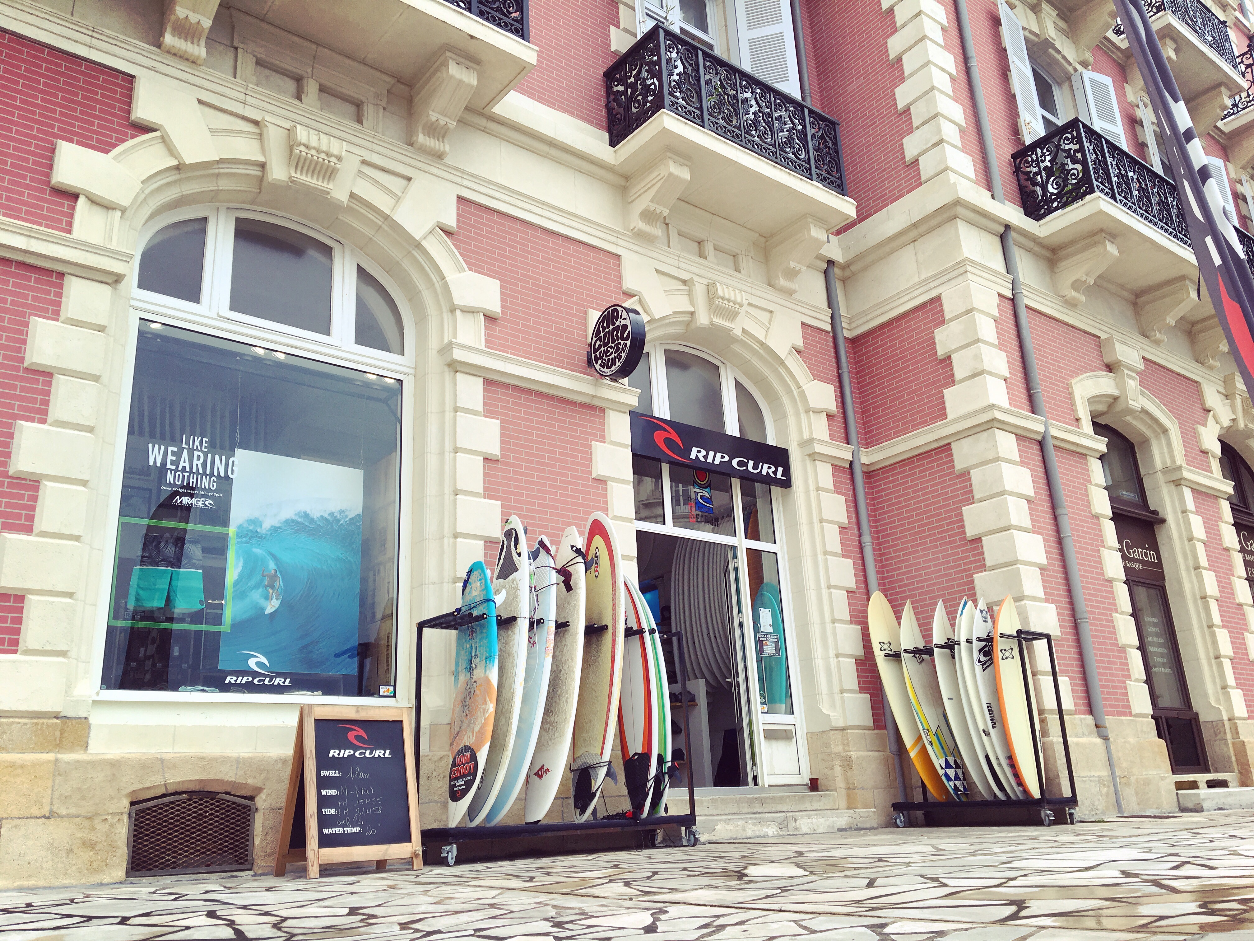 Senare googlar jag på villa Eugenie och hittar ett foto från 1800-talets Biarritz. Eller är det kanske tidigt 1900-tal? Kvinnor i långa klänningar och hattar promenerar längst stranden. Några bär på parasoll. I bakgrunden syns villan som redan tycks vara ombyggt till det lyxhotell det är idag. Riktigt fint folk drar till sig mer fint folk som i sin tur drar till sig halvflint folk och på den vägen är det. Och sist i den kedjan kom alltså vi en dag i juli 2016. Men redan på 1950-talet kom den första surfaren till Biarritz. En amerikan. Resten är, som det heter, historia. Biarritz kom att ta surfingkulturen till sitt hjärta och bli en del av den. Idag hörs brittisk engelska, tyska och svenska röster i gatuvimlet. Och mest franska, så klart. Men jag kan inte påstå att jag hör baskiska. Detta språk som är helt olikt alla andra europeiska språk och kanske var det som talades här innan indoeuropéerna kom hit. Men Biarritz ligger ändå i den franska delen av Baskien och en man på stranden bär den baskiska flaggan på sina badbyxor. Och senare när vi äter tappas på kvällen bär även en av de små rätterna den baskiska flaggan.