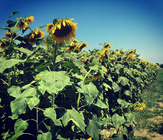 Solrosorna på bilderna är ett av mina semesterminnen från sommarens rundresa i Europa. De växte på ett fält i norra Italien. Någonstans mellan San Marino och Verona.