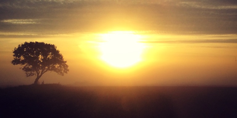 Nyss publicerade jag ett inlägg på mitt personliga konto på Facebook med en annan variant av bilden ovan, men med mer himmel ovanför solen. Jag skrev: ”Den här bilden hittade jag precis i min padda. Fotograferade den från morgontåget den 26 september. Vet inte varför jag inte publicerade den på Instagram den dagen. Kanske tyckte jag att där redan fanns för många liknande bilder på mitt konto där?