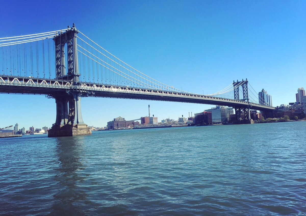 Bilden föreställer en blå bro som heter Manhatan Bridge. Om den alls finns, vill säga.