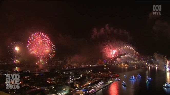 Näst på tur var Sydney klockan 14:00 svensk tid. Kanske världens mest berömda nyårsfirande? Den som varit med där glömmer det aldrig och vi ser det numera alltid livesänt på TV (BBC World) och på streaming. Dessutom har jag vakat in på taggen #SydNYE på Instagram: